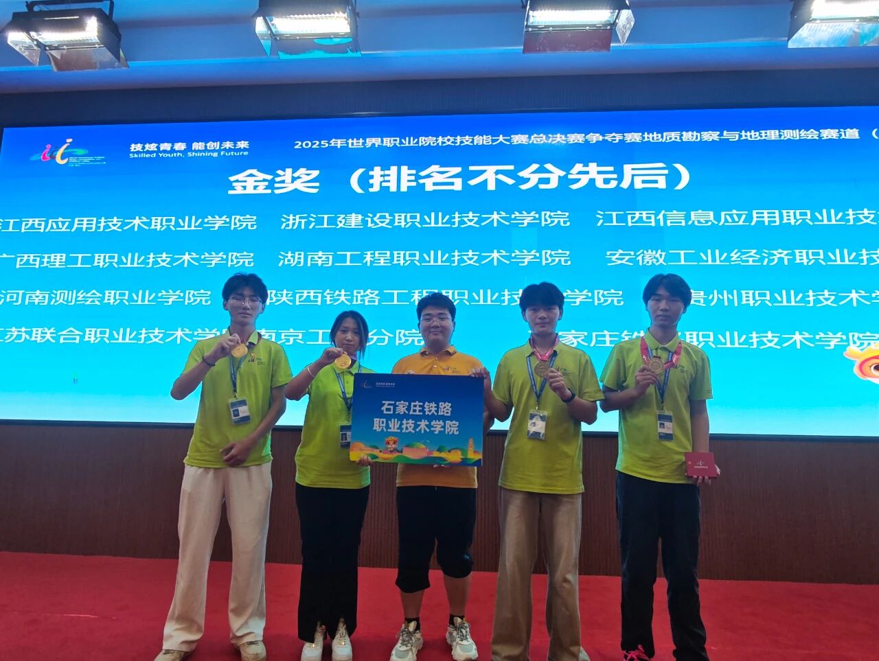2025年8月25日至30日,世界職業(yè)院校技能大賽總決賽地質勘察與地理測繪賽道(高職組)爭奪賽在江西應用技術職業(yè)學院成功舉行。經過激烈角逐,石鐵院測繪工程系王政、信蘇哲、竇甜甜、張旭闊四位同學組成的參